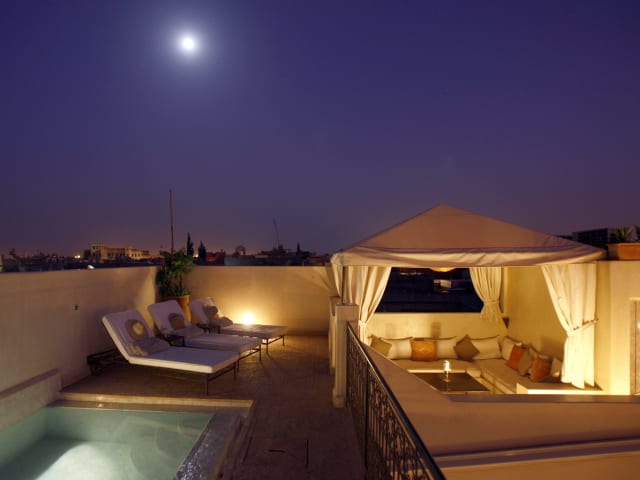 Dieses kleine, charmante Hotel empfängt Sie in der faszinierenden Landschaft von der Medina von Marrakesch. Es ist ein kleines Juwel, das von der sorgfältigen Ansammlung von Hotels RUSTICAE ausgewählt wurde, in Spanien, Portugal, Marokko und anderen mediterranen Ländern und Südamerika. Hotels von Rusticae sind sehr individuell geführt und die Besitzer legen besonderen Wert auf die Erfüllung der persönlichen Wünsche ihrer Gäste. Immer authentisch, diese Hotels befinden sich in natürlichen oder historischen Orten. Dort werden Sie schließlich das Leben mit Ruhe genießen. Trotz Tourismus ist die Medina von Marrakesch eine Welt, die ihre Wahrheit konserviert hat. Sie ist als sie 15 Jahre früher war. 5 Minuten von dem Platz Jemaa-el-Fnà und inmitten der alten Stadtmauern haben Inés und Bruno, zwei katalanische Vetter und Partner, dieses klassisches Riad, ehemalige Villa Derkaoui, die zu einer Aristokratfamilie gehörte. Nach 2 Jahren von Renovierung mit lokalen Baumaterialen wie tadelakt (Stuck), Fes zellige (Mosaik) oder bejmat (Terrakota) haben sie das Hotel Riad Abracadabra geöffnet mit Ziel einen magischen Ort zu schaffen. Die dicke Fassade schützt das Innere von dem Tumult des Souks von der Medina. Das Innere ist eine Oase, wo man ein frisches und feines Parfüm von Rosenblättern atmet. Auf dem Dach gibt es eine herrliche Terrasse mit Sesseln und Liegestühle, eine Bar und Tische, damit Sie von dem Frühstück mit Sonnenaufgang genießen.