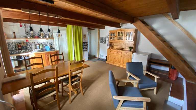 Das Ferienhaus beinhaltet zwei Schlafzimmer, die durch einen Vorhang voneinander getrennt sind. Weiterhin gibt es ein Wohnzimmer mit einem Flachbild-TV und eine gut ausgestattete Küchenzeile mit Kühlschrank und Geschirrspüler. Ein Badezimmer mit Dusche sowie Handtücher und Bettwäsche werden bereitgestellt.