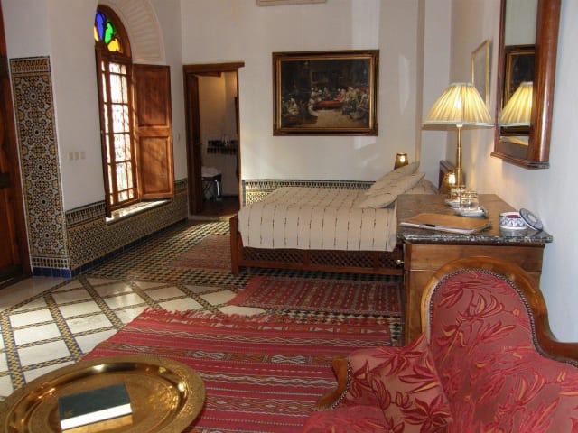 Das Ryad Mabrouka ist mit seiner einzigartigen Architektur und seiner idealen Lage eine perfekte Basis, um die Altstadt von Fes zu erkunden. Das Riad bietet die Ruhe eines arabo-andalusischen Gartens mit Swimmingpool, einer Panoramaterrasse mit Blick auf die Medina und einem großen Erkerfenster, das die Sonne den Innenhof mit seinem sprudelnden Springbrunnen, seiner großen Zedernholztür, seinen Mosaiken und seiner raffinierten Plattenarbeit erhellt. Die eleganten Zimmer verbinden marokkanische Tradition mit einem Hauch europäischer Antiquitäten.