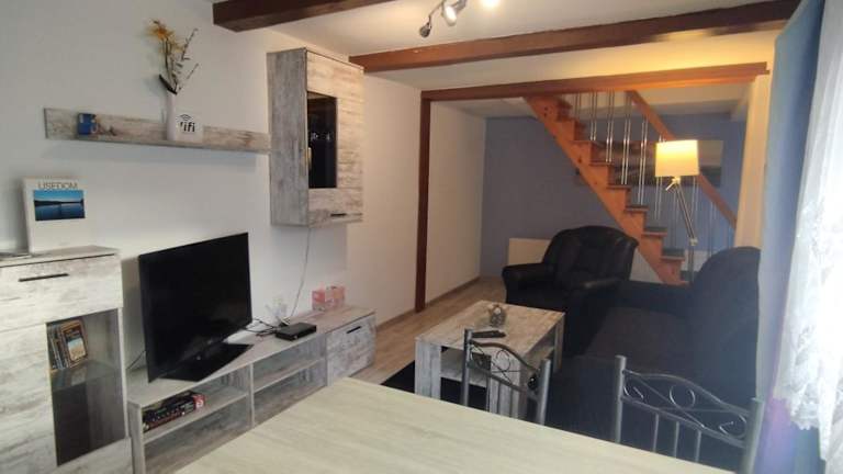 Die Ferienwohnung verfügt über 2 Schlafzimmer, eine Küche mit Kühlschrank und Ofen, einen Flachbild-TV sowie einen gemütlichen Sitzbereich. Das Badezimmer ist mit einer Dusche ausgestattet. Handtücher und Bettwäsche werden bereitgestellt. Es handelt sich um eine Nichtraucherunterkunft, die über alle wichtigen Annehmlichkeiten verfügt.