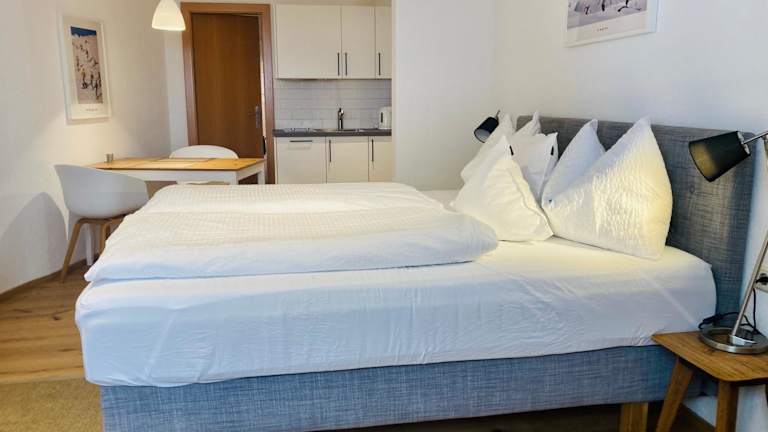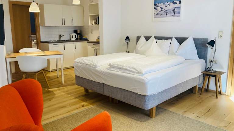 Die Ferienwohnung verfügt über ein Schlafzimmer, einen Flachbild-TV mit Satellitenkanälen, eine gut ausgestattete Küche mit Kühlschrank und Mikrowelle sowie ein Badezimmer mit Dusche. Handtücher und Bettwäsche werden bereitgestellt.