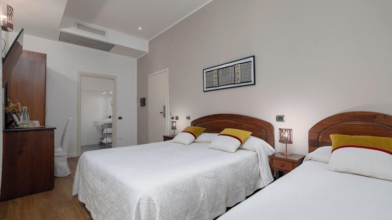Alle Zimmer des Hotel Sa Domu Cheta sind stilvoll eingerichtet und verfügen über ein eigenes Bad. Zudem bieten sie kostenfreien Internetzugang (LAN) sowie einen LCD-TV mit Pay-per-View-Kanälen. Einige Zimmer bieten einen Blick auf die zentrale Strasse Corso Vittorio Emanuele, während andere auf den Innenhof blicken.