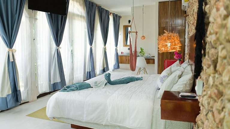 Die Zimmer im Saak Luúm Ruta Puuc sind gemütlich und komfortabel eingerichtet. Jedes Zimmer verfügt über ein eigenes Bad mit kostenfreien Pflegeprodukten, einen Flachbild-TV und Klimaanlage. Ausgewählte Zimmer bieten zudem einen Balkon, von dem aus man einen schönen Blick genießen kann. Die Zimmer sind mit hochwertiger Bettwäsche und Handtüchern ausgestattet, um den Gästen einen angenehmen Aufenthalt zu ermöglichen.
