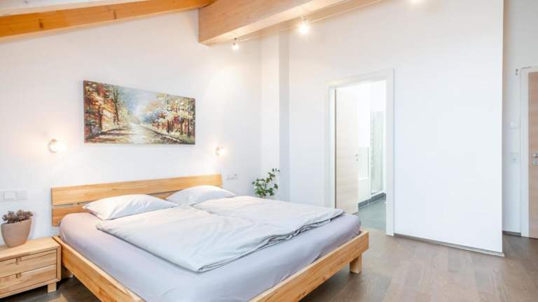 Die Ferienwohnung beinhaltet 3 Schlafzimmer, ein Wohnzimmer sowie eine voll ausgestattete Küche mit einem Kühlschrank und einer Kaffeemaschine. Sie bietet zudem 2 Badezimmer, eines mit Dusche und eines mit Badewanne. Handtücher und Bettwäsche werden bereitgestellt.