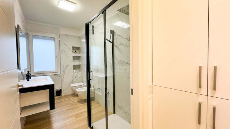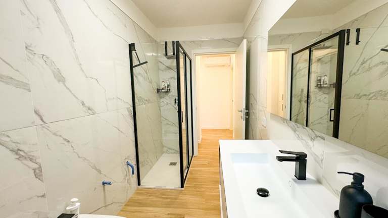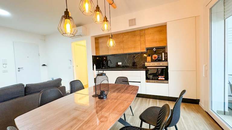 Die Ferienwohnung besteht aus 2 Schlafzimmern, einem Wohnzimmer und einer voll ausgestatteten Küche mit Kühlschrank und Wasserkocher. Es gibt 2 Badezimmer mit Bidet und Dusche. Handtücher und Bettwäsche werden bereitgestellt.