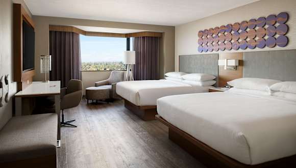 Die Zimmer sind mit einer Klimaanlage, Heizung, einem Queensizebett sowie einem Sofabett ausgestattet. Zustellbetten können angefordert werden. Zur Ausstattung gehören zudem ein Safe, eine Minibar, ein Kühlschrank, eine Mikrowelle und eine Tee-/Kaffeestation. Ein Telefon, ein TV-Gerät, ein Radio sowie WiFi sind ebenfalls vorhanden. Die Badezimmer sind mit einer Dusche, Haartrockner und Bademänteln ausgestattet. Es stehen auch rollstuhlgerechte Zimmer zur Verfügung.