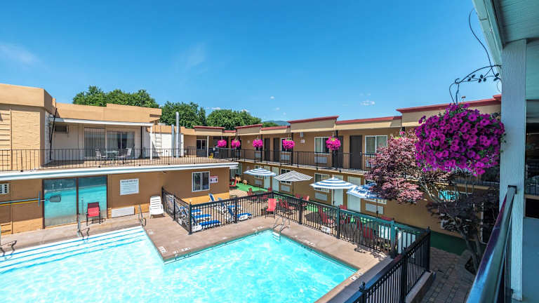 Das Sahara Courtyard Inn befindet sich in Penticton, nur 5 Gehminuten vom Okanagan Lake entfernt. Der Loco Landing Adventure Park liegt knapp 1,5 km entfernt, während der Flusskanal nur 2 Gehminuten vom Motel entfernt ist.