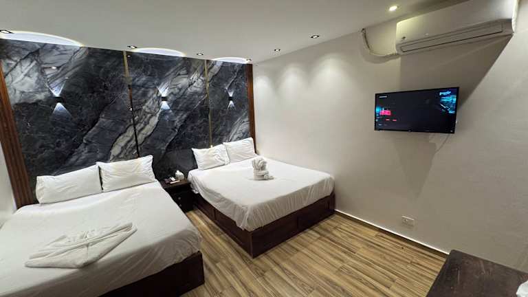 Die klimatisierten Zimmer sind ausgestattet mit einem Kleiderschrank, einem Wasserkocher, einem Kühlschrank, einem Safe, einem Flachbild-TV und einem eigenen Badezimmer mit einem Bidet. Bettwäsche und Handtücher sind ebenfalls vorhanden.