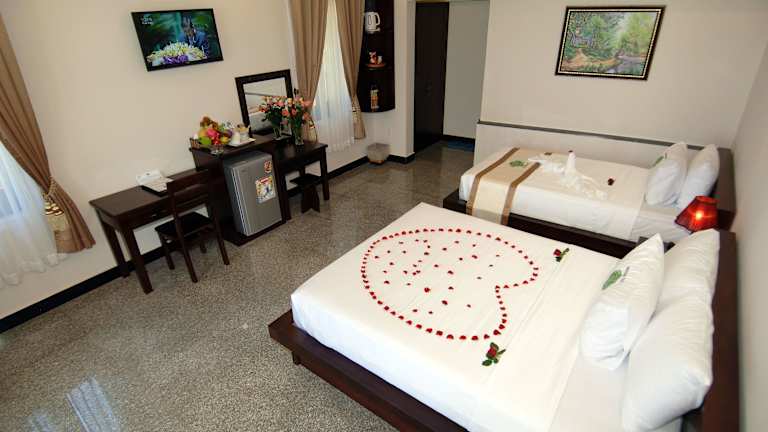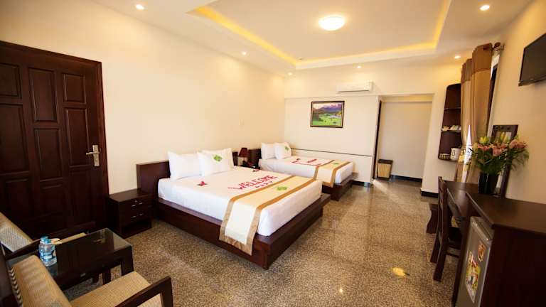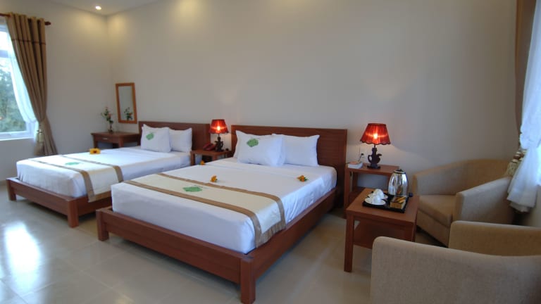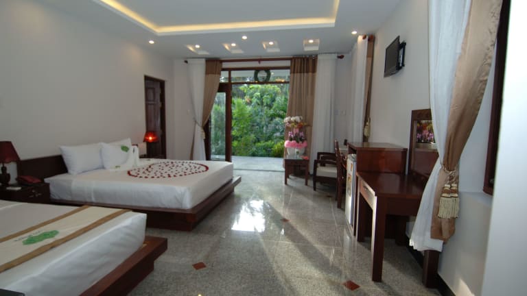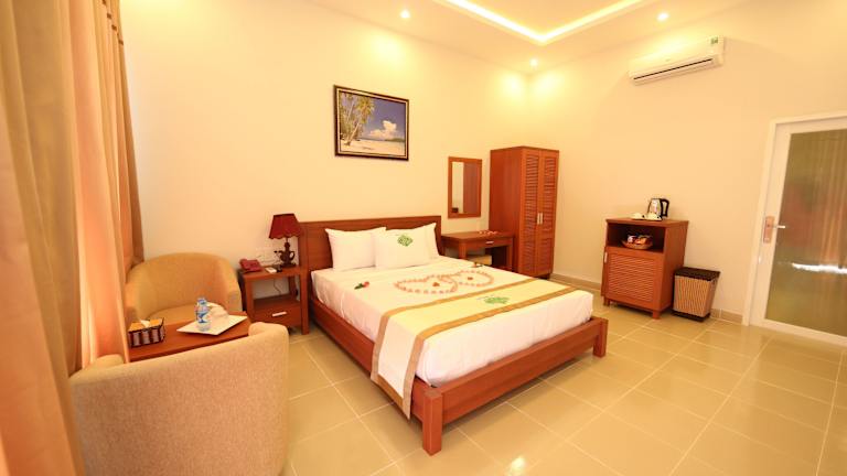 Das Saigon Emerald Beach Resort liegt in schöner Lage am Strand von Suoi Nuoc und bietet einen einfachen Zugang zu den beliebten weissen Sanddünen und dem Markt von Mui Ne, der sich in einer Entfernung von 8 km befindet. Das Resort ist 200 km von Ho-Chi-Minh-Stadt und dem internationalen Flughafen Tan-Son-Nhat entfernt, während der Märchenfluss weniger als 10 km entfernt ist.