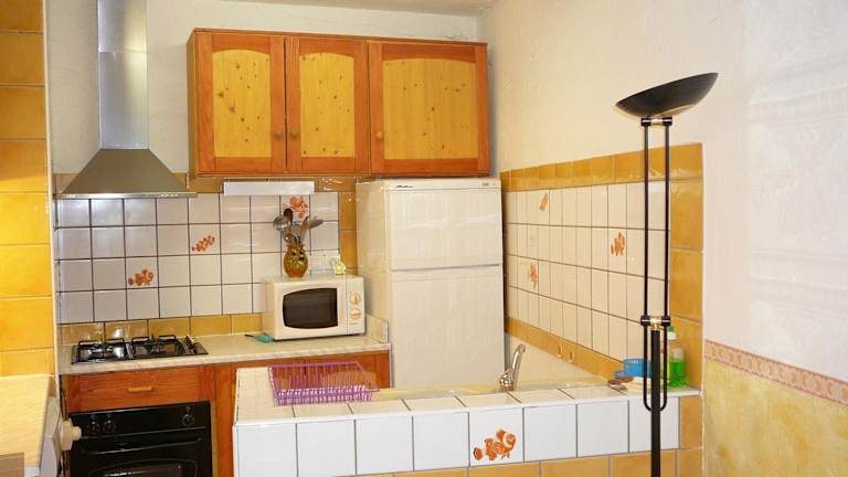 Das Ferienhaus bietet ein Schlafzimmer, einen Flachbild-TV mit Kabelkanälen, sowie eine gut ausgestattete Küche mit Kühlschrank und Ofen. Das Badezimmer ist mit einer Dusche ausgestattet und sorgt für Bequemlichkeit während des Aufenthalts.