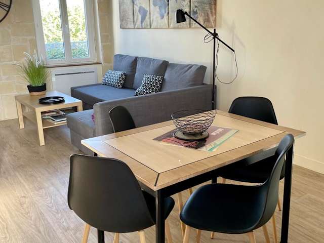 Die Ferienwohnung besteht aus einem Schlafzimmer, einem Wohnzimmer sowie einer voll ausgestatteten Küche mit Kühlschrank und Kaffeemaschine. Ein Badezimmer mit Dusche und Haartrockner ist ebenfalls vorhanden. Handtücher und Bettwäsche werden bereitgestellt. Die Unterkunft ist für Nichtraucher und bietet in allen Bereichen kostenloses Wifi.