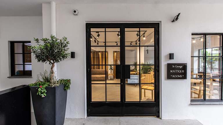Saint George Boutique Rooms ist eine Nichtraucherunterkunft mit modern gestalteten Zimmern und einer Terrasse. Die Unterkunft bietet kostenloses WLAN im gesamten Bereich. Check-in ist von 14:00 bis 23:30 Uhr möglich, während der Check-out zwischen 08:00 und 11:00 Uhr erfolgt. Zu den Dienstleistungen gehören ein Express-Check-in/-out und ein Conciergeservice. Es gibt Sicherheitsvorkehrungen wie Videoüberwachung in den Gemeinschaftsbereichen und der Außenanlage. Die Unterkunft folgt Maßnahmen zur Desinfektion und Reinigung gemäß den Richtlinien der örtlichen Behörden.