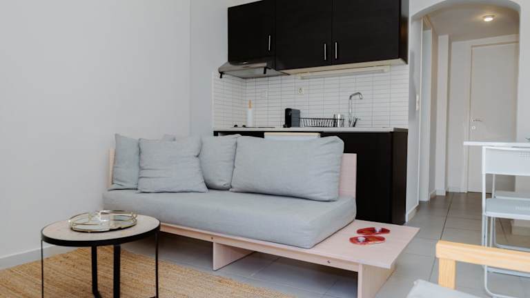 Die Ferienwohnung ist klimatisiert und setzt sich aus 1 Schlafzimmer, einem Wohnzimmer sowie einer voll ausgestatteten Küche mit Kühlschrank und Kaffeemaschine zusammen. Das Badezimmer beinhaltet eine Dusche und einen Haartrockner. Handtücher und Bettwäsche werden bereitgestellt. Ein Flachbild-TV und ein Essbereich sind ebenfalls vorhanden. Zudem erfreuen sich die Gäste an einem Balkon mit Stadtblick.
