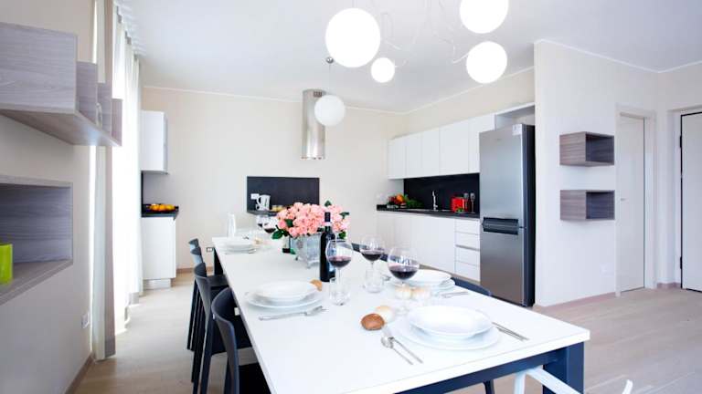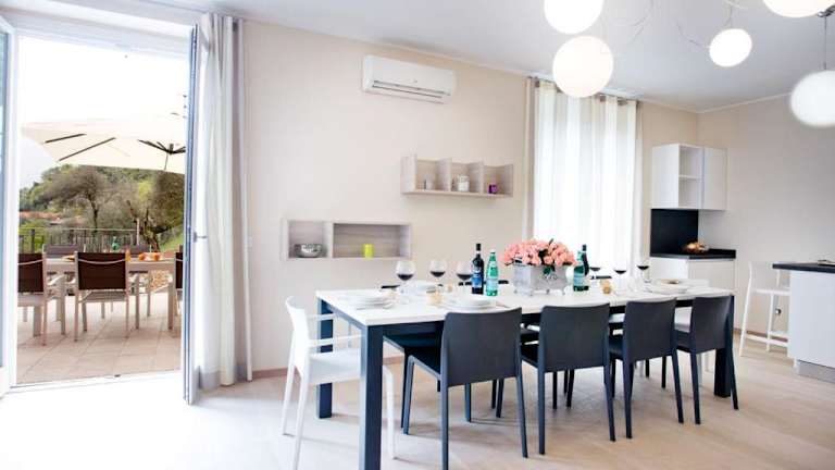Das Sala Comacina Residence Apartment 5 ist eine geräumige Ferienwohnung, die Platz für bis zu 10 Gäste bietet. Sie verfügt über eine Terrasse, einen saisonalen Aussenpool sowie einen überdachten Innenpool und eine Sauna. Die Unterkunft ist modern und einladend gestaltet, sodass ein angenehmes Ambiente entsteht.