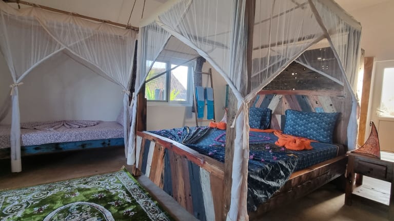 Die Unterkunft Salama & Mbuyuni Bungalows befindet sich in Matemwe, nur 700 m vom Strand Matemwe entfernt. In der Nähe liegen der Pwani Mchangani Beach (2,9 km) und das Friedensmuseum Beit el Amani (44 km). Der Flughafen Sansibar ist 49 km entfernt.