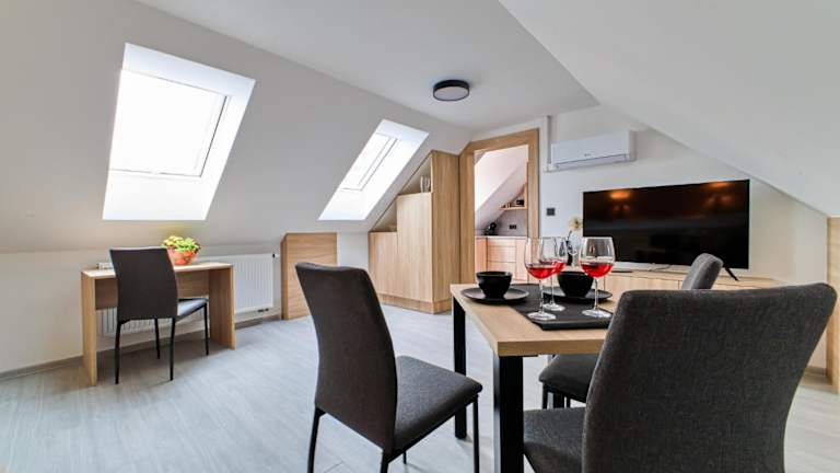 Die Gästezimmer in der SALAŠKA penzion sind unter anderem mit einem Flachbild-TV und einer Küchenzeile ausgestattet. Jedes Zimmer verfügt über ein eigenes Badezimmer mit Dusche und kostenlosen Pflegeprodukten. Einige Zimmer bieten zudem einen Blick auf die Stadt. Die Zimmer sind allesamt mit Bettwäsche und Handtüchern ausgestattet. Kostenloses Wifi steht in allen Bereichen zur Verfügung.