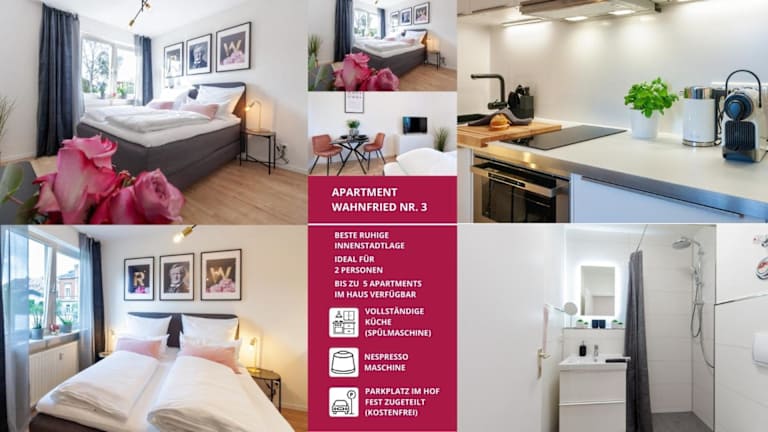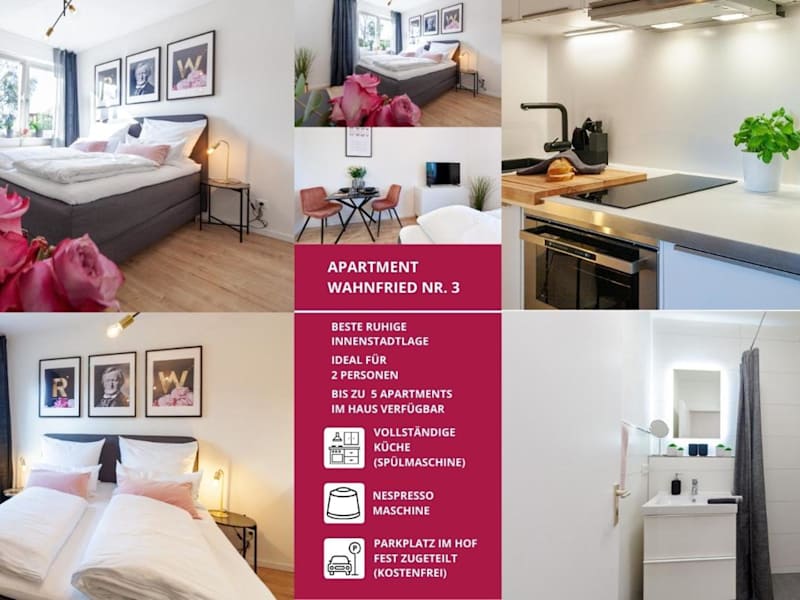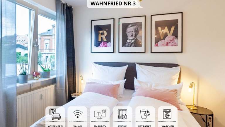 Das Apartment Wahnfried No3 ist eine modern eingerichtete Ferienwohnung, die sich in einem Gebäude aus dem Jahr 1992 befindet. Es bietet eine heimelige Atmosphäre und die Bequemlichkeit einer voll ausgestatteten Küche, ideal für einen uneingeschränkten Aufenthalt. Die Unterkunft verfügt über kostenloses WLAN und bietet einen schönen Stadtblick.