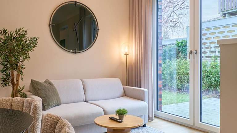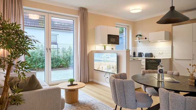 Die Ferienwohnung umfasst ein Schlafzimmer und ein Wohnzimmer sowie eine voll ausgestattete Küche mit Kühlschrank und Wasserkocher. Das Badezimmer verfügt über eine Dusche und einen Haartrockner. Handtücher und Bettwäsche werden zur Verfügung gestellt.