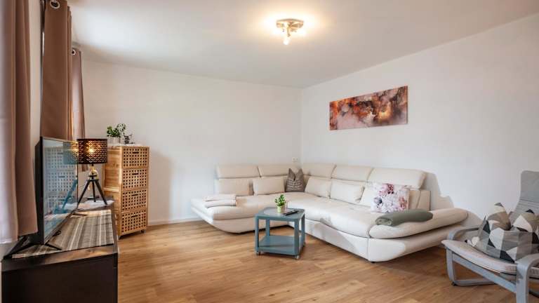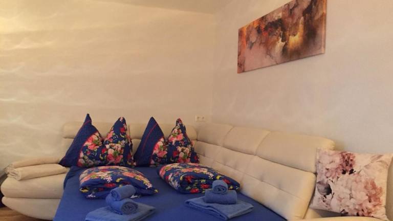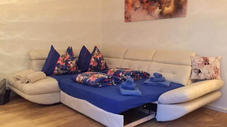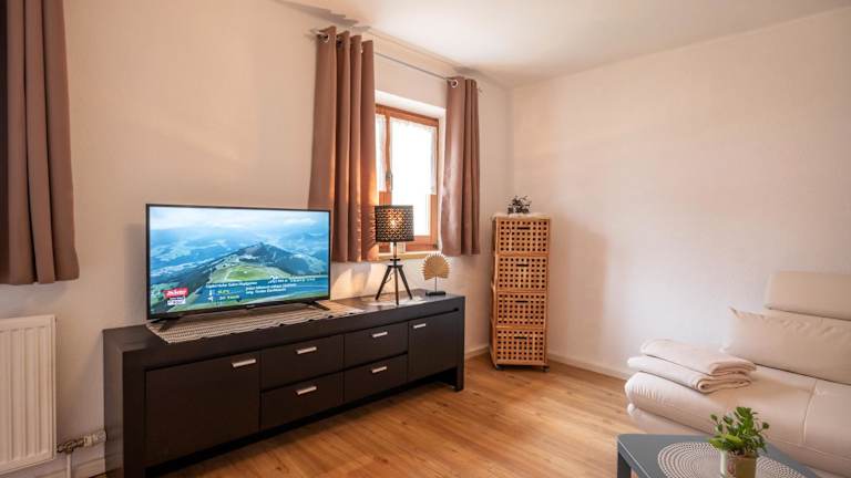 Die Ferienwohnung enthält 1 Schlafzimmer, ein Wohnzimmer und ein Badezimmer mit Dusche und Haartrockner. Zur weiteren Ausstattung gehört eine voll ausgestattete Küche mit Kühlschrank und Kaffeemaschine. Handtücher und Bettwäsche werden bereitgestellt.
