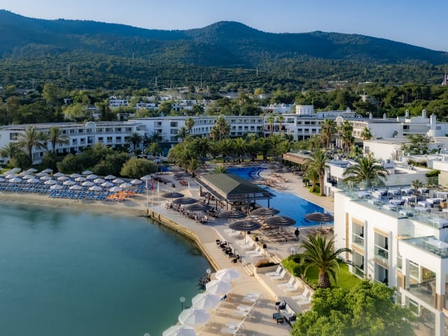 Das Samara Hotel Bodrum liegt im Stadtteil Torba von Bodrum, direkt am Strand in einer Badebucht. Die Umgebung bietet eine malerische Landschaft und einen atemberaubenden Blick auf das Meer. Der Flughafen Bodrum Milas ist etwa 27 km entfernt und das Stadtzentrum von Bodrum erreichen Sie nach einer kurzen Fahrt von 10 Minuten. Einkaufsmöglichkeiten und Unterhaltungsmöglichkeiten sind ebenfalls in der Nähe.