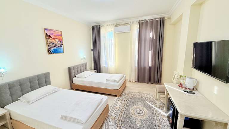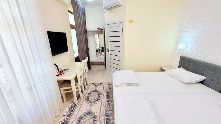 Dieses Hotel befindet sich in Samarkand, nur einen 10-minütigen Spaziergang von der Altstadt entfernt. In der Umgebung gibt es einen Supermarkt und weitere Geschäfte zum Einkaufen und Bummeln. Zu den Sehenswürdigkeiten gehört das Gur-e-Amir-Mausoleum, das fußläufig erreichbar ist.