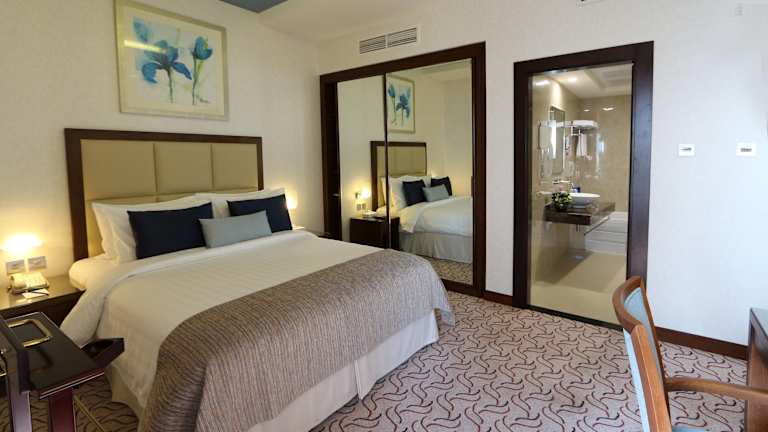Das luxuriöse Samaya Hotel Deira erstreckt sich über 16 Etagen und bietet insgesamt 213 Zimmer. Die Gepäckaufbewahrung und der Zimmerservice sowie ein 24-Stunden-Sicherheitsdienst sorgen für Bequemlichkeit und Sicherheit. Eine mehrsprachige Rezeption und ein hilfsbereiter Tourdesk bieten Unterstützung für Gäste. Verschiedene Einrichtungen wie ein Friseur, eine Münzwäscherei und ein eigener Shuttlebus sind ebenfalls verfügbar. Das Hotel verfügt über rollstuhlgerechte Annehmlichkeiten und begrüsst Kinder mit einem Spielplatz.