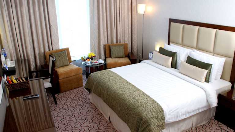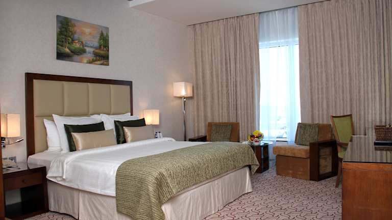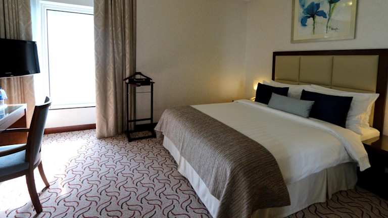 Die Zimmer sind hell und freundlich eingerichtet mit luxuriösen Pflegeprodukten im eigenen Bad sowie einem Flachbild-Sat-TV. Zu den Annehmlichkeiten zählen Klimaanlage, Heizung, Safe, Minibar, Schreibtisch und Tee-/Kaffeemaschine. Darüber hinaus sind Zustellbetten auf Anfrage verfügbar, und die Badezimmer sind mit einer Dusche, Badewanne und hochwertigen Kosmetikartikeln ausgestattet.