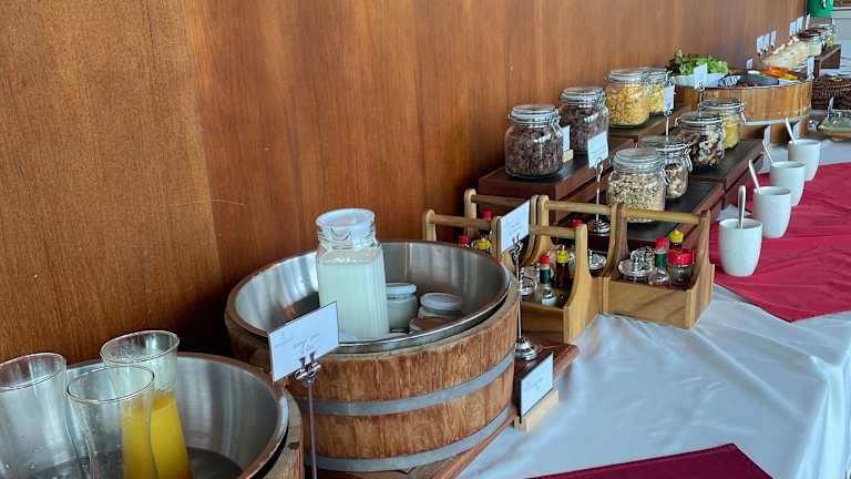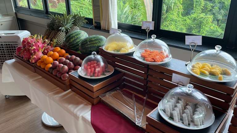 Beim Frühstück können Gäste zwischen à la carte, kontinentalen oder asiatischen Optionen wählen. Weitere Verpflegungsmöglichkeiten sind im Restaurant und in der Snackbar des Hauses verfügbar.