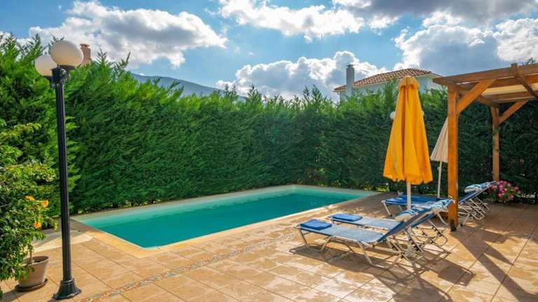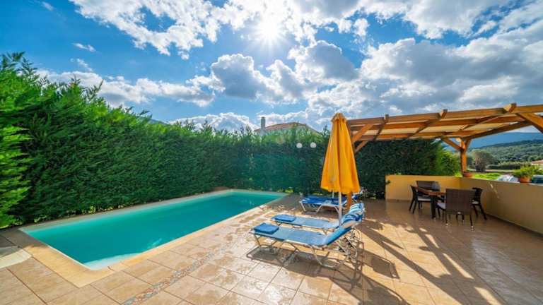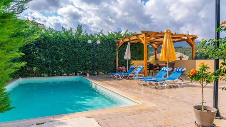 Die Sami Beach Villas Dafni bieten klimatisierte Übernachtungsmöglichkeiten mit eigenem Pool und Balkon. Die Unterkunft verfügt über einen schönen Garten, eine Grillmöglichkeit sowie kostenloses WLAN und eine Parkiermöglichkeit.