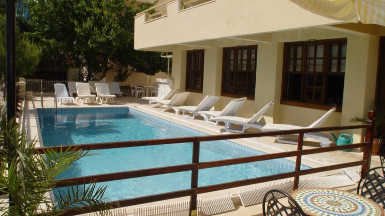 Das Hotel Samoy in Marmaris bietet eine einfache Unterkunft in Strandnähe. Genießen Sie Ihren Aufenthalt in den Zimmern mit Balkon und TV. Das Hotel verfügt über einen Außenpool und ein Restaurant, das regionale und internationale Gerichte serviert. WLAN ist in den öffentlichen Bereichen kostenlos verfügbar. Das Hotel befindet sich in der Nähe von Geschäften, Restaurants und Bars und ist nur 20 Gehminuten vom Yachthafen und der Burg Marmaris entfernt.