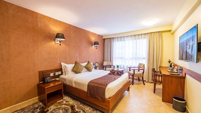 Jedes Zimmer im Samra Hotel ist mit einem Kleiderschrank ausgestattet und verfügt über ein eigenes Badezimmer mit Haartrockner, Hausschuhen und einem Bidet. Zur Ausstattung der Zimmer gehören ein Flachbild-TV und ein Safe, was den Gästen eine heimelige Atmosphäre schafft.