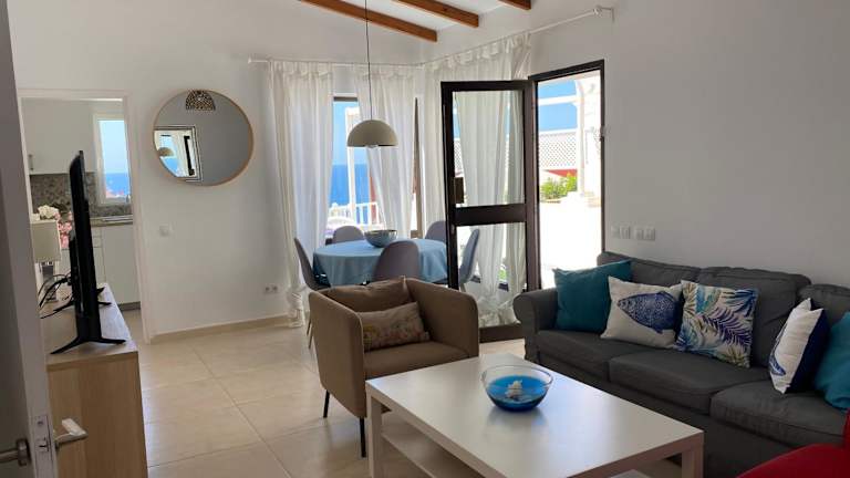 Die Ferienwohnung beinhaltet 3 Schlafzimmer und 2 Badezimmer. Des Weiteren sind Bettwäsche und Handtücher vorhanden, ebenso ein Flachbild-TV mit Satellitenkanälen, ein Essbereich, eine voll ausgestattete Küche und eine Terrasse mit Meerblick.