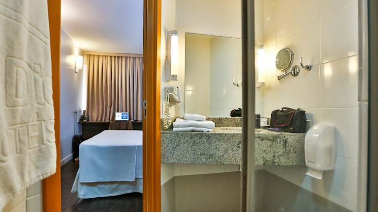 Die Zimmer sind ausgestattet mit einer Klimaanlage, einem Doppelbett sowie einem Safe, einer Minibar und einem Schreibtisch. Zudem stehen ein Fernseher, ein Kühlschrank und Wifi ohne Gebühr zur Verfügung. Die Badezimmer sind mit einer Dusche und Badewanne sowie einem Haartrockner ausgestattet. Für Gäste mit eingeschränkter Mobilität sind rollstuhlgerechte Zimmer verfügbar.