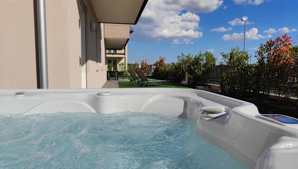 San Giorgio Design Home con Jacuzzi Privata bietet Übernachtungsmöglichkeiten in einer Ferienwohnung mit einem saisonalen Aussenpool und einem Garten. Die Unterkunft ist für Familien geeignet und garantiert durch die Nichtraucherzone ein gesundes Ambiente.