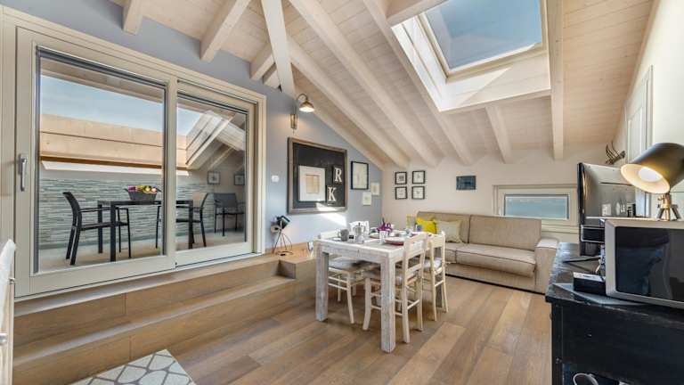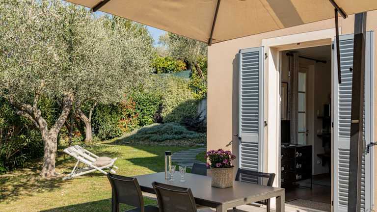 Die Apartments im San Giorgio sind komfortabel und bieten eine gemütliche Landhausatmosphäre. Mit Parkettböden, einer gut ausgestatteten Küchenzeile und einem Flachbild-TV werden Sie sich wie zu Hause fühlen. Genießen Sie den Blick auf den Garten, den See und die umliegenden Hügel von Ihrem eigenen Balkon oder Ihrer Terrasse. Die klimatisierten Zimmer sorgen auch an heißen Tagen für angenehme Temperaturen.