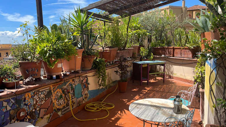 Die Unterkunft San Saba Roof Top Garden liegt ungefähr 1,9 km vom Domus Aurea entfernt. In der Nähe befinden sich interessante Orte wie das Kolosseum, das Forum Romanum und der Palatin. Der nächstgelegene Flughafen ist der Flughafen Rom-Ciampino, welcher 14 km entfernt ist.