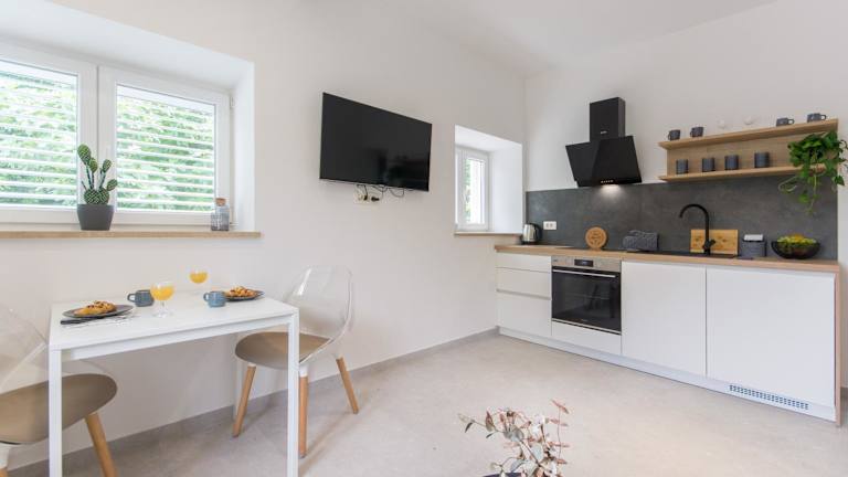 Die Apartments verfügen über einen Sitzbereich, einen flachen Satelliten-TV und eine voll ausgestattete Küche mit Kühlschrank und Herdplatte. Jedes Apartment bietet ein eigenes Badezimmer mit Dusche und kostenlosen Pflegeprodukten.