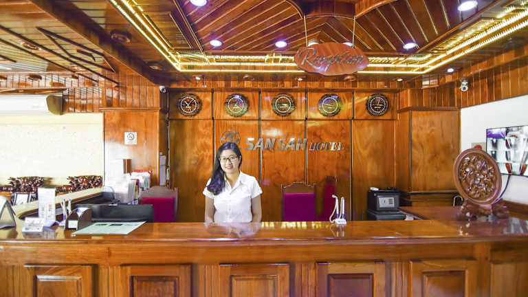 Das San San Hotel Da Nang bietet Übernachtungsmöglichkeiten in einem einladenden Ambiente. Es ist ein modernes Hotel mit verschiedenen Einrichtungen, darunter eine Terrasse und eine Gemeinschaftslounge. Die rund um die Uhr besetzte Rezeption steht den Gästen ebenso zur Verfügung wie ein Zimmerservice. Die Unterkunft ist rauchfrei und ein Währungsumtausch wird ebenfalls angeboten.