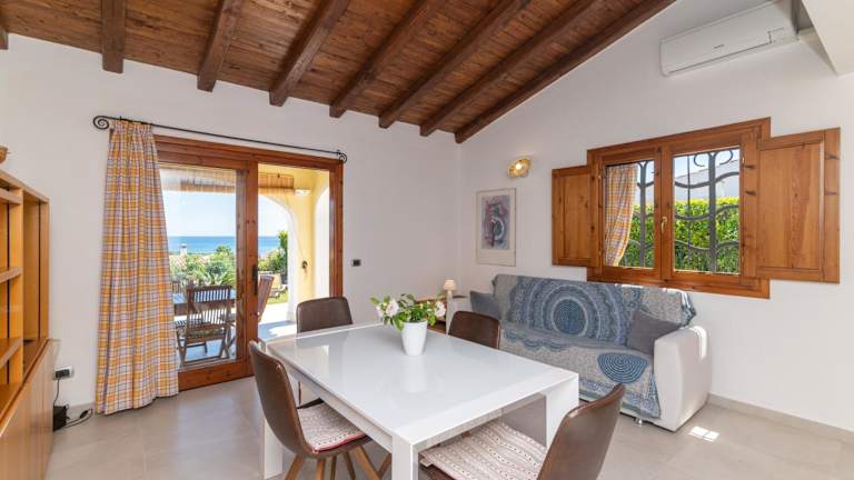 Die Villa umfasst zwei Schlafzimmer und ein Badezimmer. Zur Ausstattung gehören Bettwäsche, Handtücher, ein TV mit Satellitenkanälen sowie eine voll ausgestattete Küche. Eine Terrasse mit Blick auf das Meer ergänzt die heimelige Unterkunft.