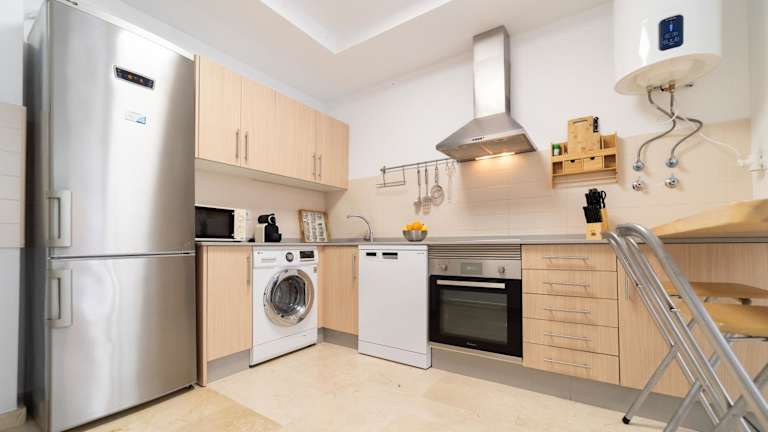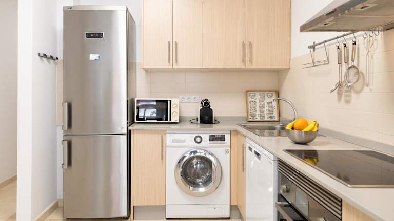 Die Ferienwohnung verfügt über ein Schlafzimmer und ist mit einem Flachbild-TV sowie einer gut ausgestatteten Küche, die einen Kühlschrank und einen Geschirrspüler umfasst, ausgestattet. Des Weiteren gibt es ein Badezimmer mit Badewanne. Handtücher und Bettwäsche werden bereitgestellt. Die Unterkunft wird zwischen den Aufenthalten desinfiziert und die Wäsche wird entsprechend der Richtlinien der örtlichen Behörden gereinigt.