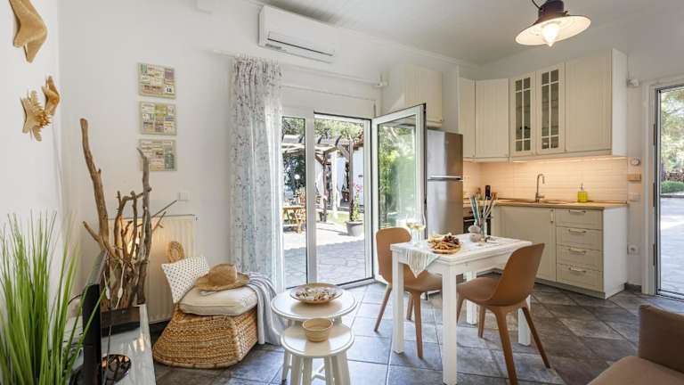 Die Unterkunft Sand Resort befindet sich in Ormos Panagias in der Region Mazedonien, nur 800 Meter vom Strand Karagatsi entfernt. Die Umgebung bietet zahlreiche Möglichkeiten zur Erkundung, wie Wandern, Angeln und Schnorcheln.
