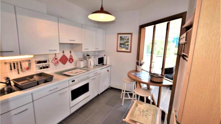 Die Ferienwohnung verfügt über ein Schlafzimmer, ein Wohnzimmer sowie eine gut ausgestattete Küche mit Kühlschrank und Ofen. Es sind Handtücher und Bettwäsche vorhanden.