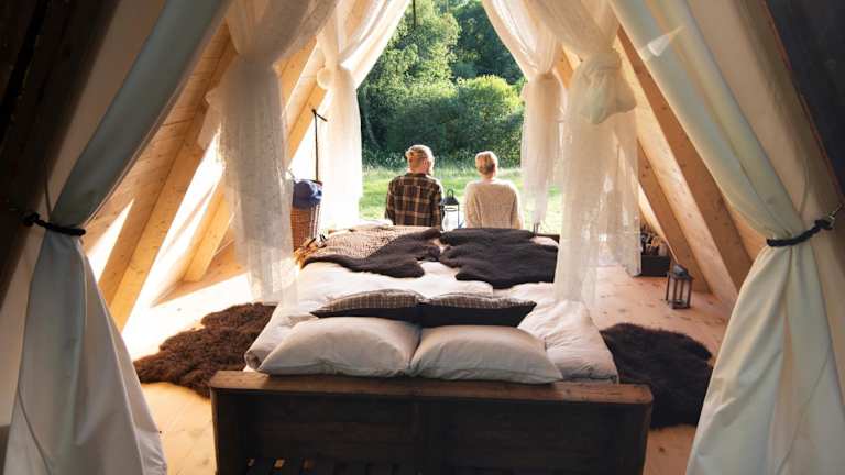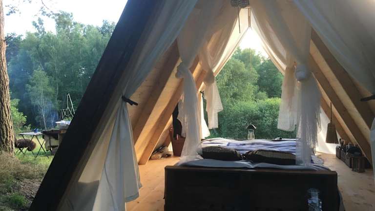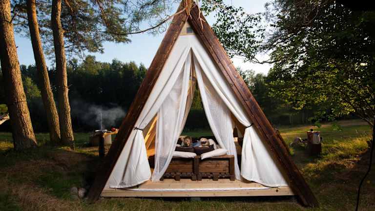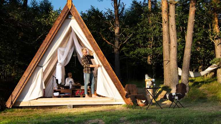 Die Unterkunft Sandfallet Glamping stellt eine Zelt-Lodge dar, die mit einer Veranda oder einem Patio ausgestattet ist. Umgeben von einem Garten, bietet die Unterkunft auch einen kostenlosen Privatparkplatz.