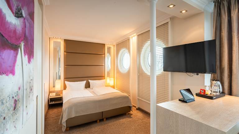 Unser Haus hat verschiedene Kategorien: EZ ForOne+ (mit Balkon) DZ LittleTwo DZ LittleTwo+ (mit Balkon) DZ ForTwo DZ ForTwo+ (mit Balkon) DZ ForTwo+View DZ AndMore (Juniorsuite) DZ Andmore+View (Panorama Suite) Alle Zimmer sind mit TV, Telefon, Wasserkocher und Bad mit Dusche ausgestattet.