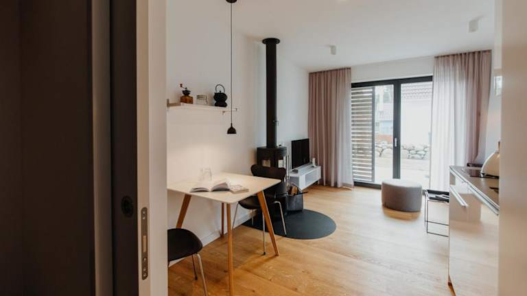 Die Zimmer verfügen über einen Sitzbereich, einen Flachbild-TV und eine voll ausgestattete Küche, die unter anderem mit Kühlschrank, Geschirrspüler, Ofen, Herdplatte, Toaster und Kaffeemaschine eingerichtet ist. Ein eigenes Badezimmer mit Dusche und Haartrockner ist ebenfalls vorhanden. Die Terrasse bietet Gartenblick und die Unterkunft kommt ohne bereitgestellte Bettwäsche und Handtücher aus; diese können gegen Aufpreis ausgeliehen werden.