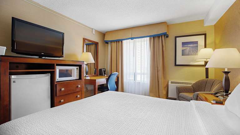 Die Zimmer des Hotels sind mit einer Klimaanlage und Heizung ausgestattet und verfügen über ein Queensizebett, ein Sofabett sowie einen Schreibtisch. Günstige Extras wie ein Kühlschrank, eine Mikrowelle und eine Kaffee-/Teemaschine sorgen für Bequemlichkeiten. Ein Haartrockner und Bademäntel sind im Badezimmer vorhanden. WLAN steht ohne Gebühr zur Verfügung, und es sind sowohl rollstuhlgerechte Zimmer als auch Familienzimmer buchbar.
