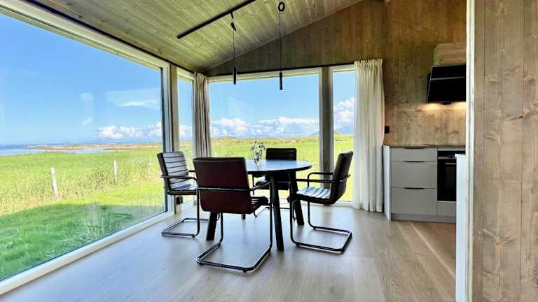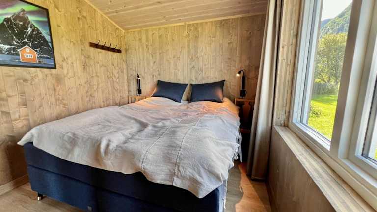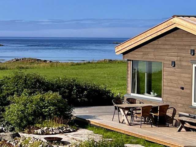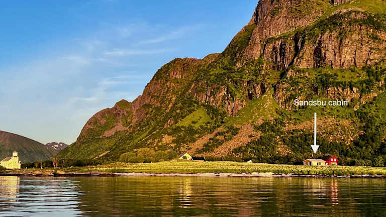 Sandsbu Cabin - Gimsøy Lofoten bietet Übernachtungsmöglichkeiten in einem heimeligen Chalet mit einer Terrasse. Die Unterkunft verfügt über kostenloses Wifi und einen Gartenblick.