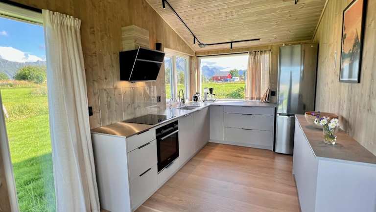 Die Unterkunft Sandsbu Cabin - Gimsøy Lofoten liegt in Gimsøy, nur 1,2 km vom Strand Gimsoy entfernt. Die Umgebung lädt zu entspannten Spaziergängen in der Natur ein und bietet eine schöne Aussicht auf den Garten.