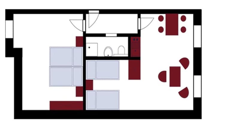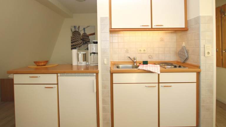 Die Ferienwohnung verfügt über 1 Schlafzimmer und ein Wohnzimmer mit einem TV. Zudem gibt es eine voll ausgestattete Küche, die mit einem Kühlschrank versehen ist.