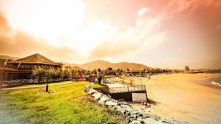 Das Sandy Beach Hotel befindet sich in Fujairah, direkt am Meer, eingebettet zwischen dem Indischen Ozean und dem Hajar-Gebirge. Es liegt 30 Fahrminuten von der Stadt Fujairah und 1,5 Stunden von Dubai entfernt, ideal für Strandurlauber.